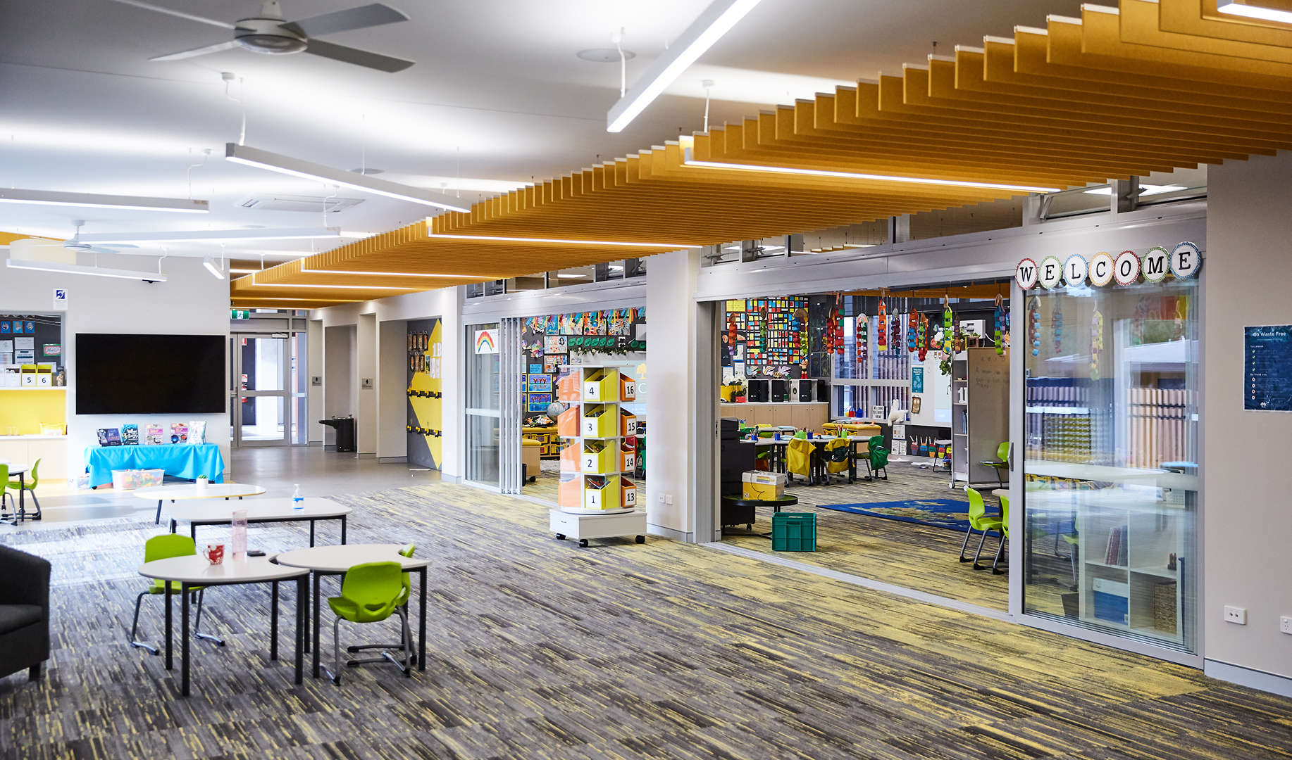 Designed through evidence-based principles, this learning neighbourhood blends light-filled classrooms, outdoor learning areas and creative play spaces to inspire exploration, imagination and wonder. Flexible learning zones support individual, small group and whole-class instruction, encouraging collaboration and discovery at every stage.